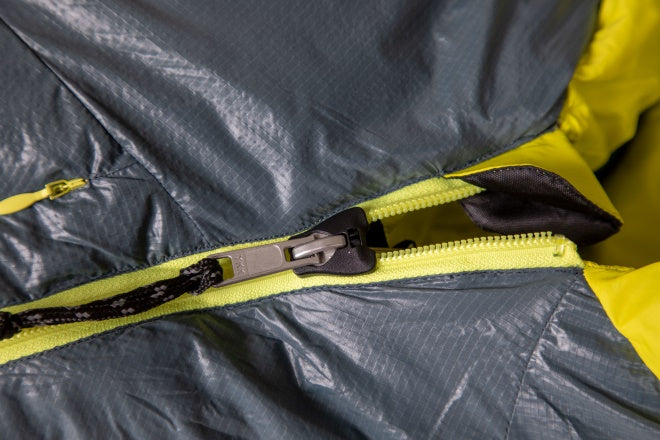 Our flagship Thermo Gills™ allow you to regulate temperature without letting in drafts, deeply extending the useable temperature range. The waterproof/breathable footbox and hood protect from tent wall condensation. Our exceptionally packable 800 FP down is hydrophobic, PFC-free, and 100% Responsible Down Standard (RDS) certified. Top-shelf fabrics include a 20D nylon ripstop with DWR on the shell, an ultra-smooth 30D nylon taffeta lining, and a 40D nylon ripstop waterproof/breathable footbox.