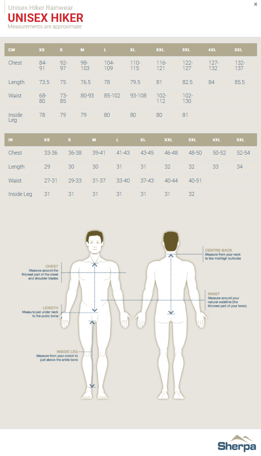 Upgraded from the original hiker with a higher breathability and waterproof rating the new Sherpa Stay Dry Hiker II Pants offers superior protection in the outdoors. These new and improved rain pants have a 10,000mm waterproof rating to keep you dry and warm and dry in consistent rain and unpredictable weather. Furthermore, these rain pants are rated 7,000mvp for breathability allowing you to walk, hike, garden and enjoy the outdoors while staying dry and sweat free! Easily packed away these pants are the perfect coverage for any unexpected down falls to keep your other layers dry and comfortable for the rest of your journey.