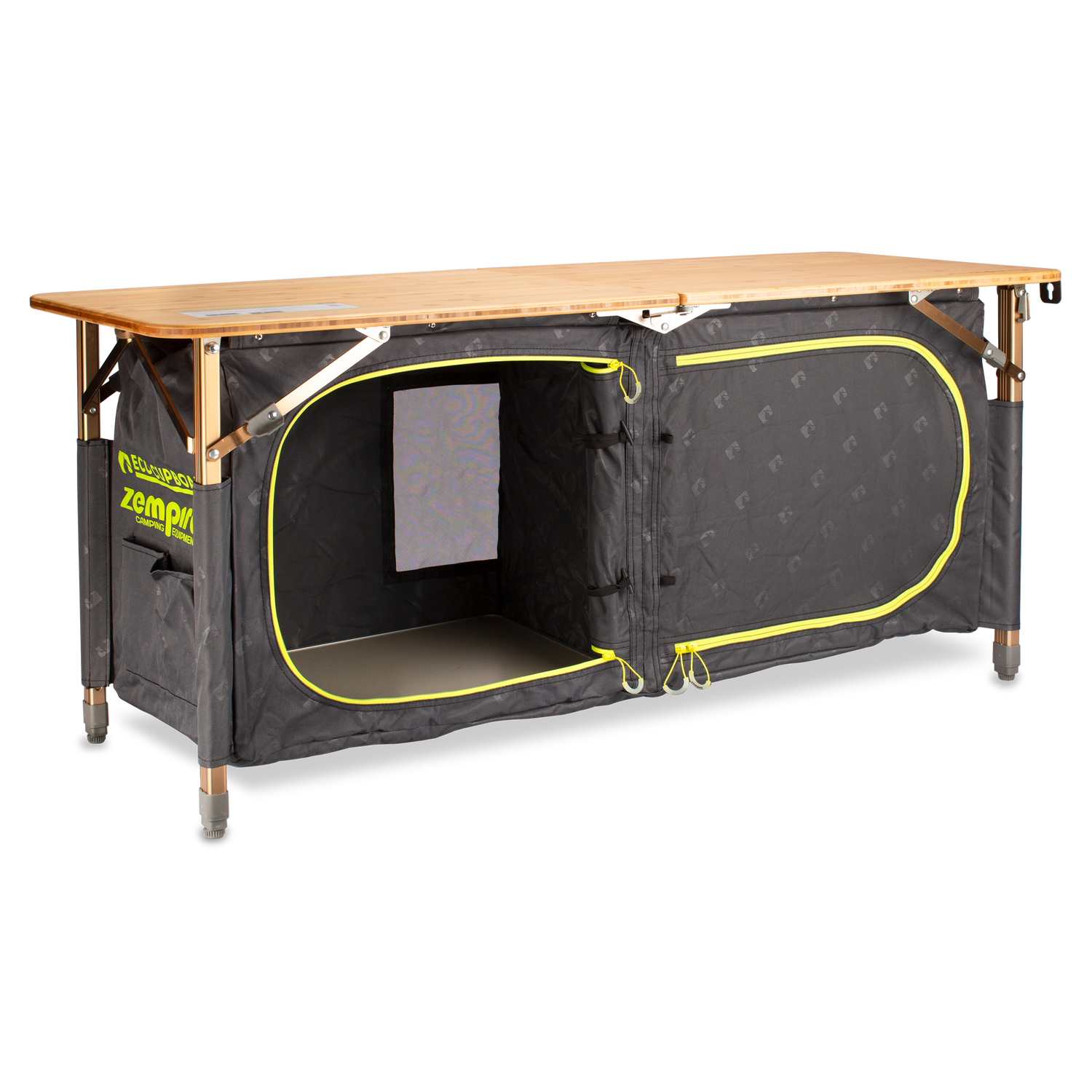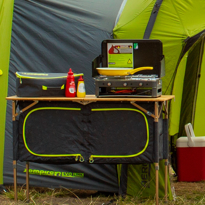 The adjustable height and wide bamboo tabletop make this adaptable twin cupboard perfect for bedroom, living or kitchen storage. The fully foldable frame design allows the cupboard to fold down small for travel with the cupboard and legs stored safely inside. Frame locks allow you to lock the frame into an open or closed position for extra stability and convenience.
