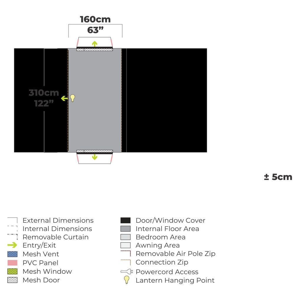 Connect to the Shapeshifter 4 Sleeping or Awning Modules via colour-coded, numbered zippers, or link a Zempire Shifterbase Air Shelter to the side doors for extra covered dining or relaxation space.