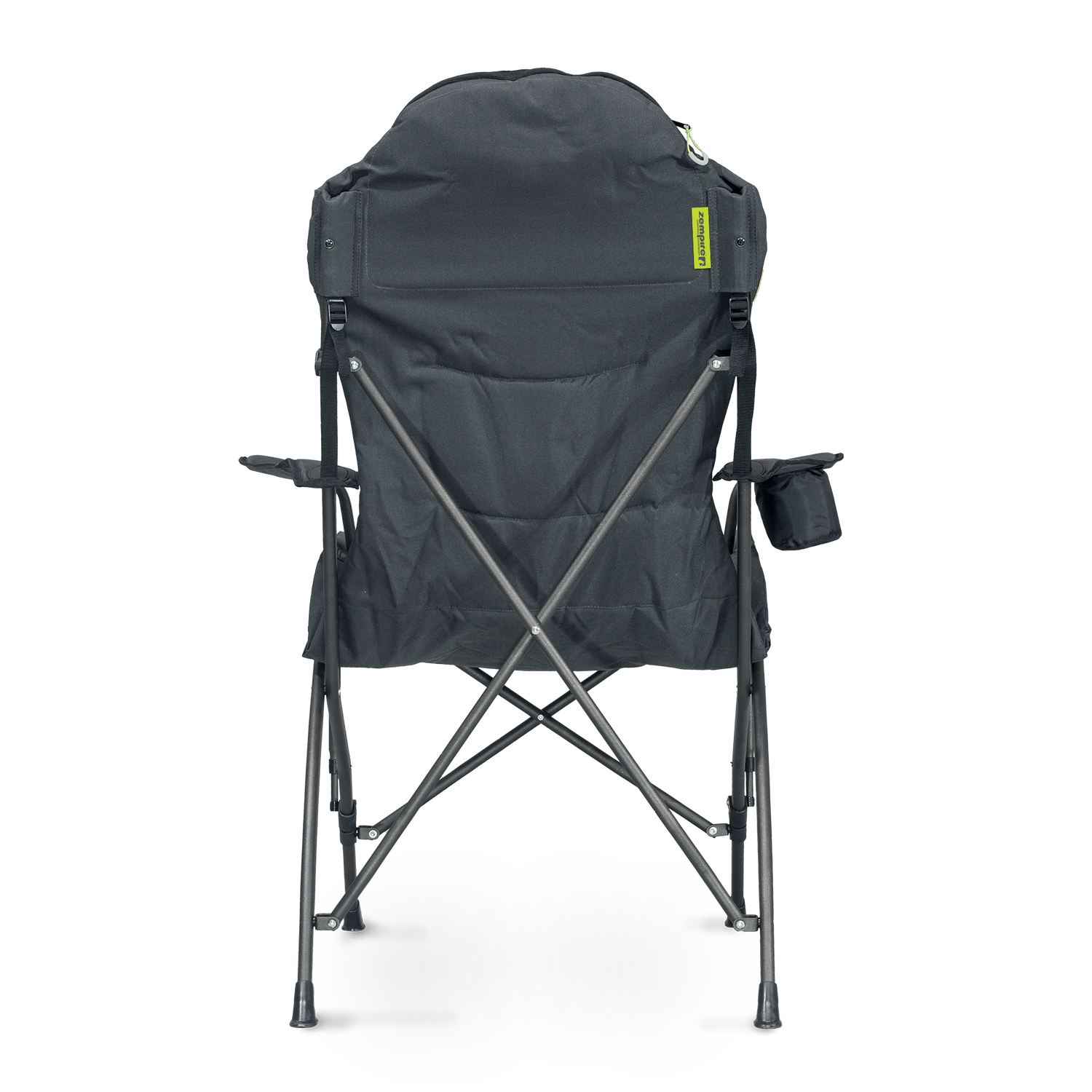 The Stargazer is a luxurious camp chair. An extra-high back is supportive and fully-padded for comfort. The zippered opening at the top offers the perfect storage space for your carry-bag, creating an integrated pillow. Adjustable arm straps allow you to customize the arm height to suit any user. A built-in insulated cup holder guarantees that your drinks stay cold on hot summer days.